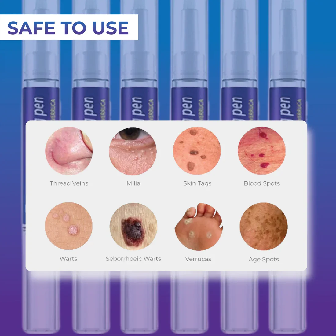 En seulement 3 à 14 jours, dites adieu aux verrues, étiquettes et autres imperfections cutanées. Ce stylo agit rapidement et en douceur, sans douleur ni cicatrices. Il est idéal pour toutes les zones du corps : mains, pieds, visage... Rien ne lui résiste !